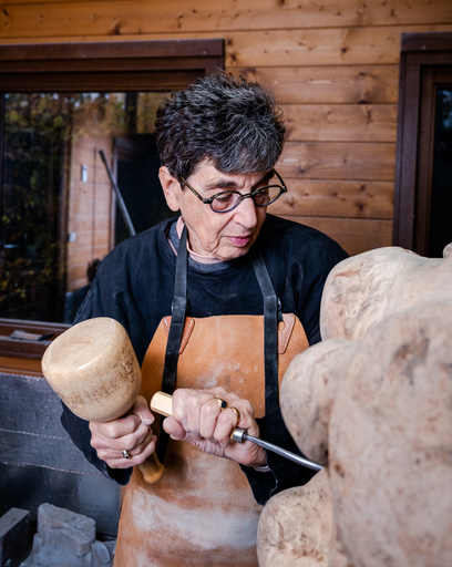 Carolien (1945) is a sculptor. She works in stone. Her work is semi-figurative and abstract. She starts out from the character of the stone and looks for broad lines and tension between planes and curves. The work brings about a relation with the stone. Watching and feeling her way leads to a final result that had to be just like that. This process keeps amazing her. Recently she has also worked in wood.